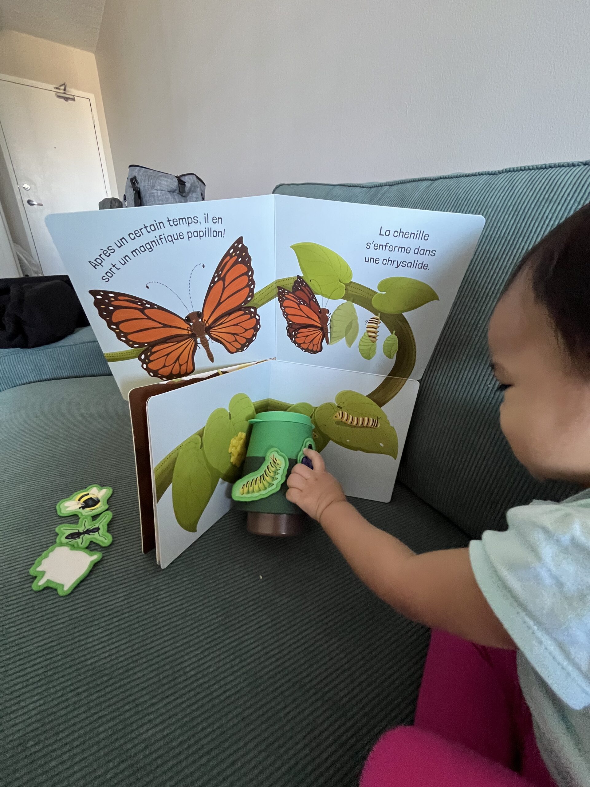 At just 14 months old, she’s still too young to fully understand metamorphosis, but when she saw the caterpillar wriggling on the screen and then looked down at her fuzzy bug shrub, her eyes lit up, and she let out an excited “Ah!”