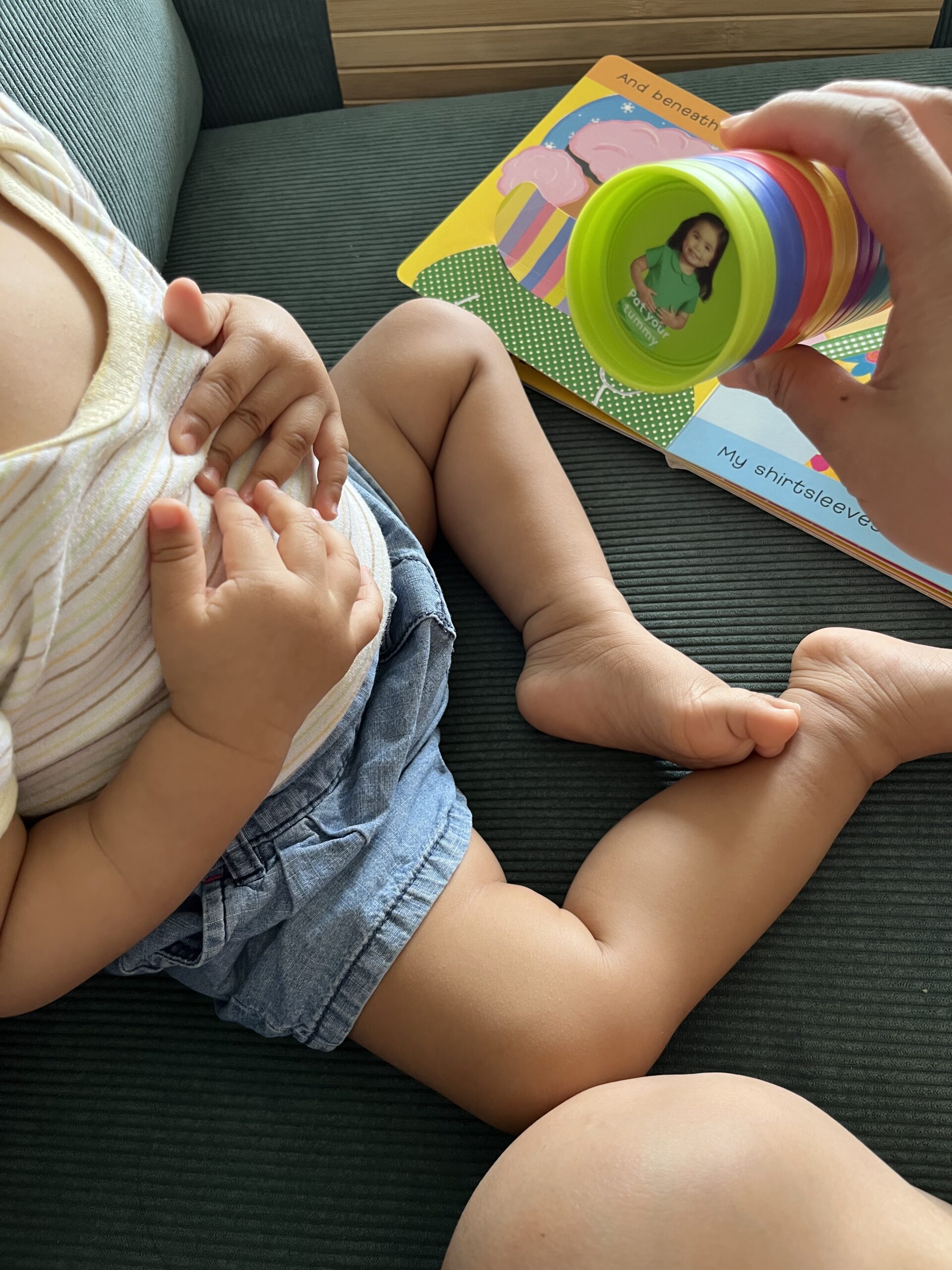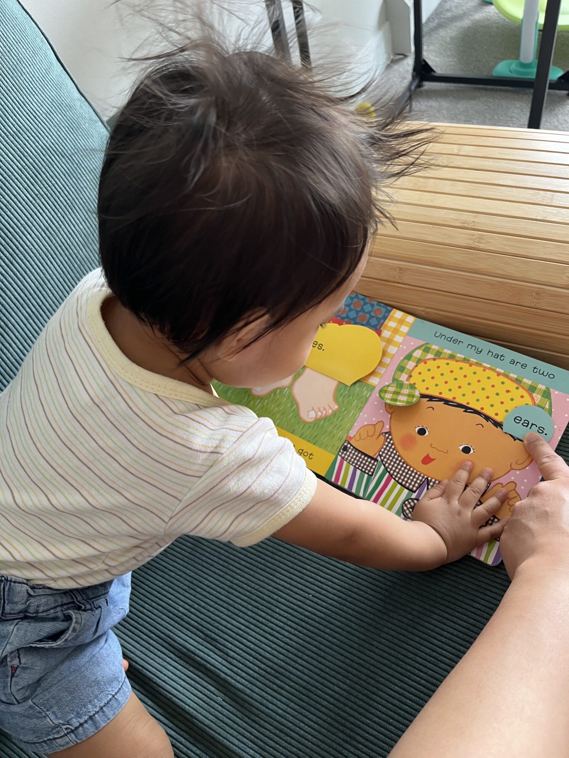 One day, while we were on a video call with her Nana, something amazing happened. Her Nana said, “Touch your nose,” while touching her own, and to our surprise, our daughter copied her! She was just 13 months old then, and we hadn’t realized she was already picking up on gestures like that. Since then, we’ve added more parts—eyes, ears, mouth, head—and she’s picked up each one quickly. We make it part of our daily routine and slowly add new words as she’s ready.