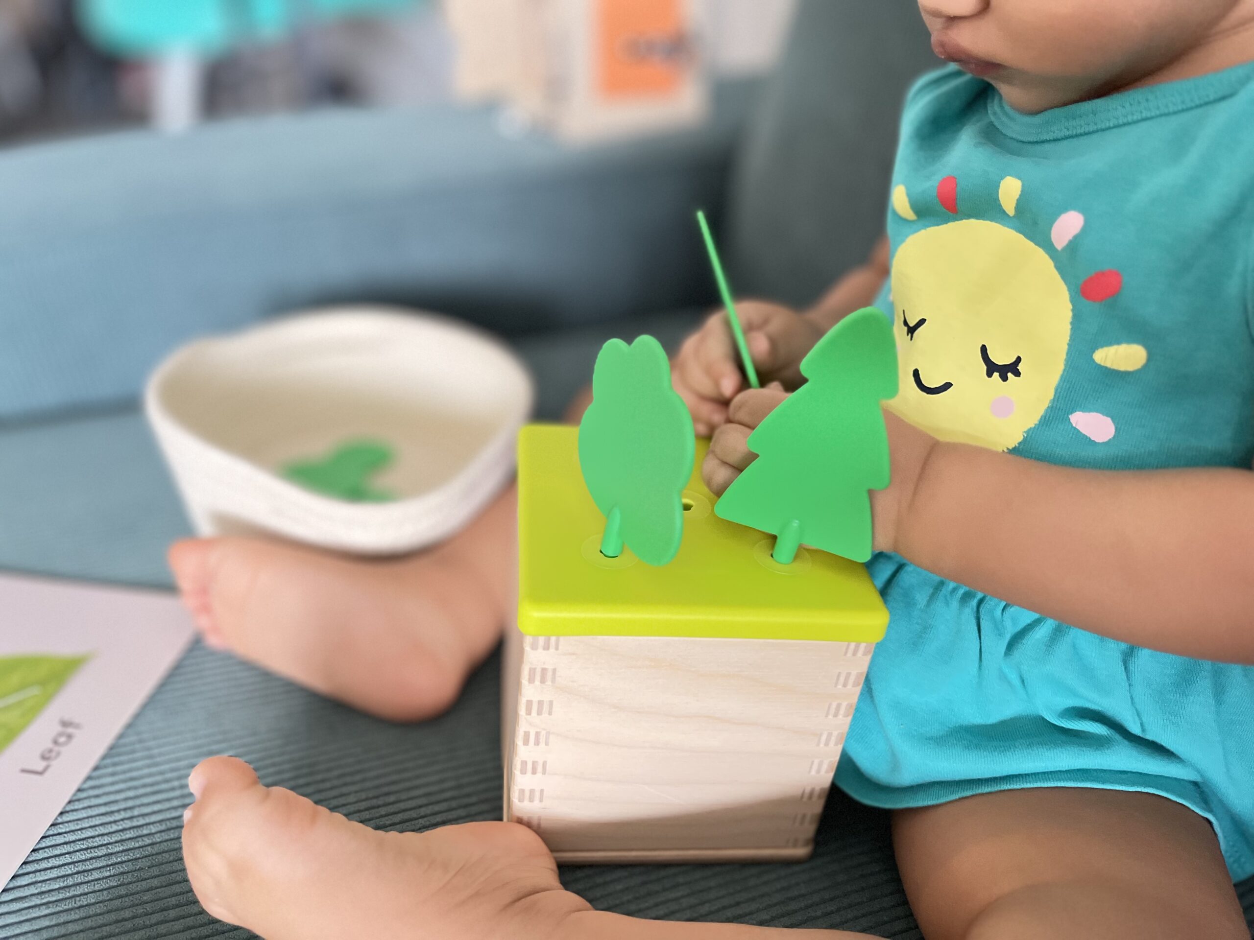 - Lovevery Posting Box & Trees from the Babbler Play Kit (or any small tree-shaped toy)