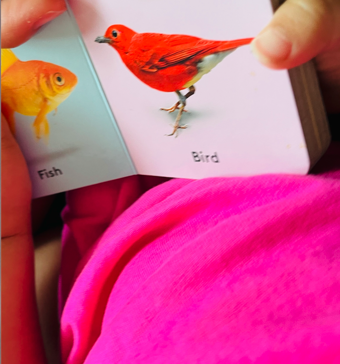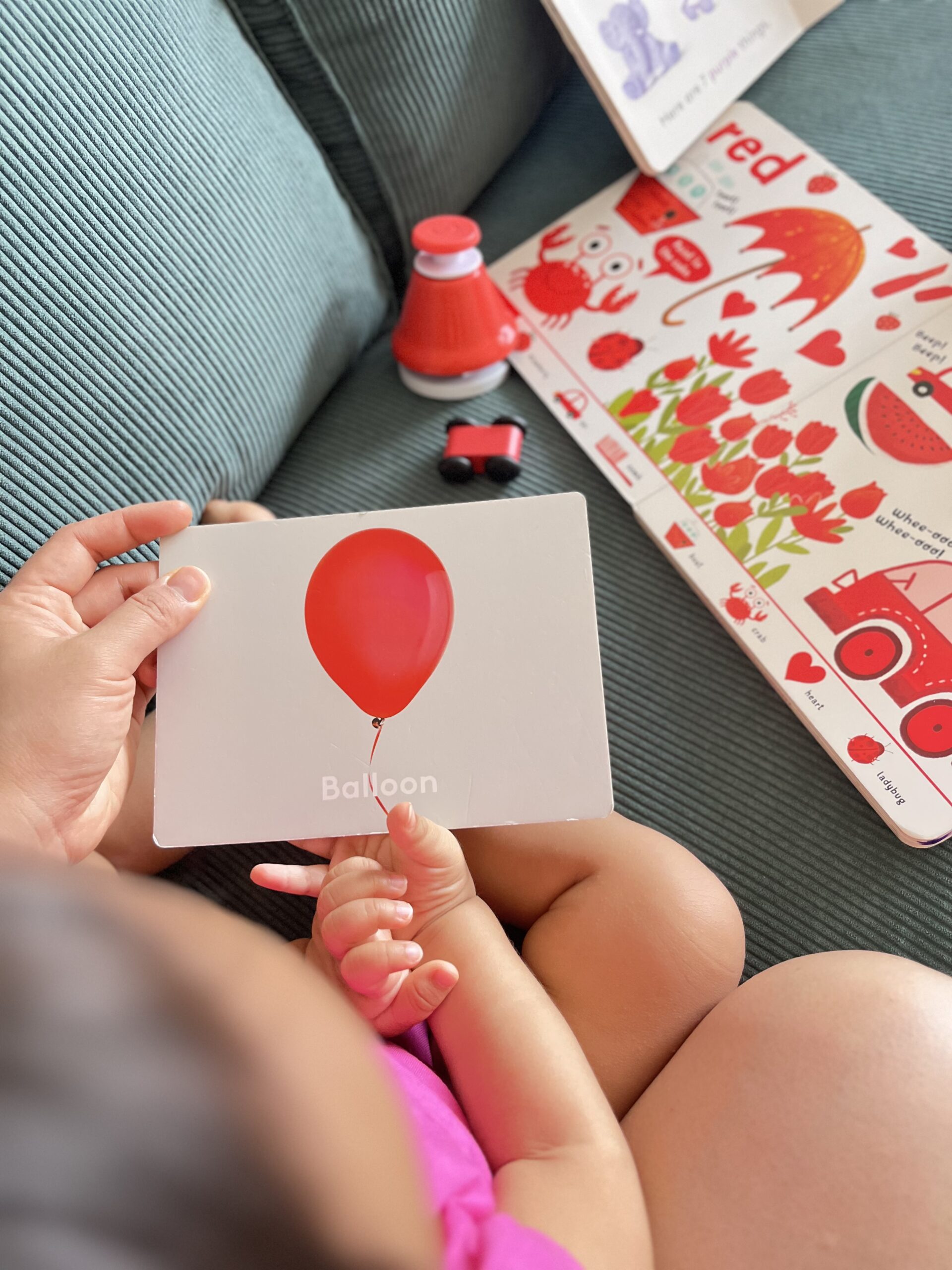 Books, flashcards, and hands-on objects all work together to make red more than a color; it becomes a part of everyday learning.